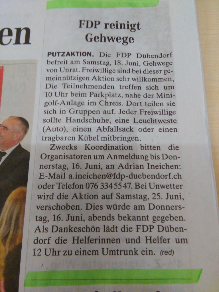 18. Juni 2016: Clean-Up Day der FDP Dübendorf