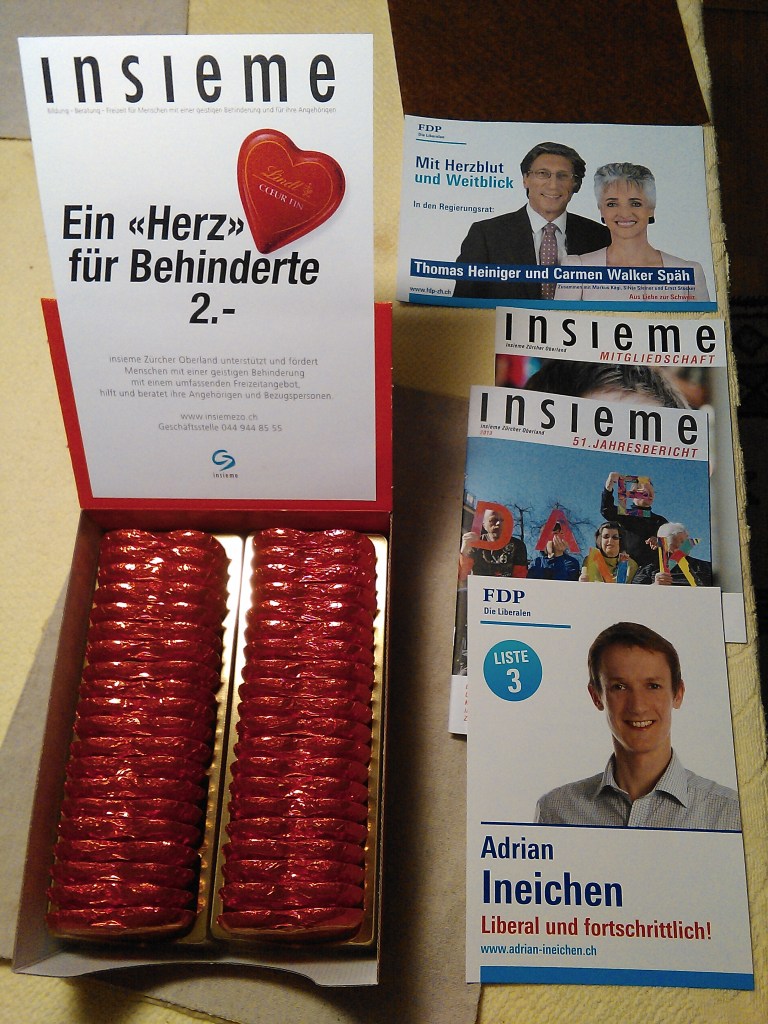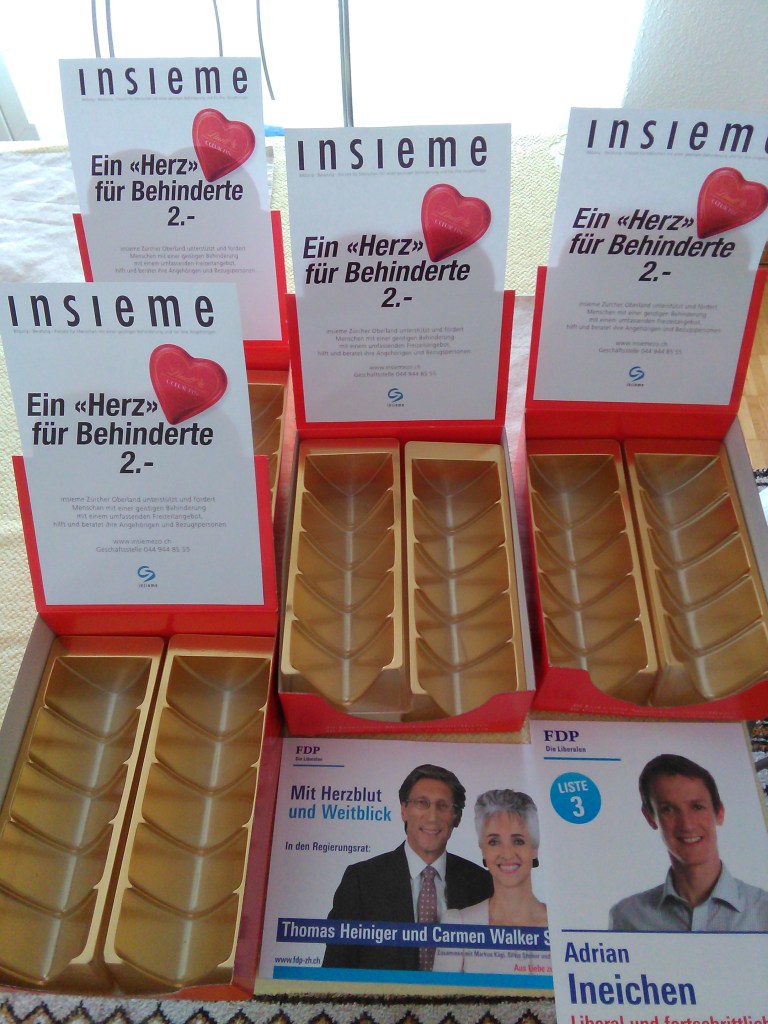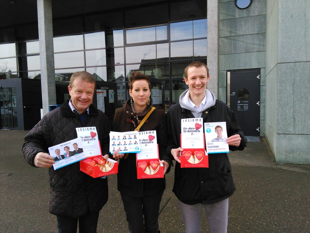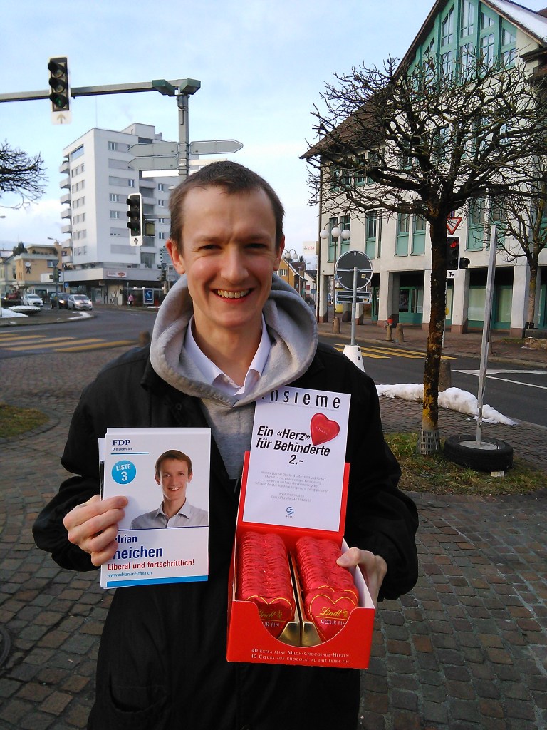 Schoggiherzliaktion am Valentinstag 2015 für einen guten Zweck