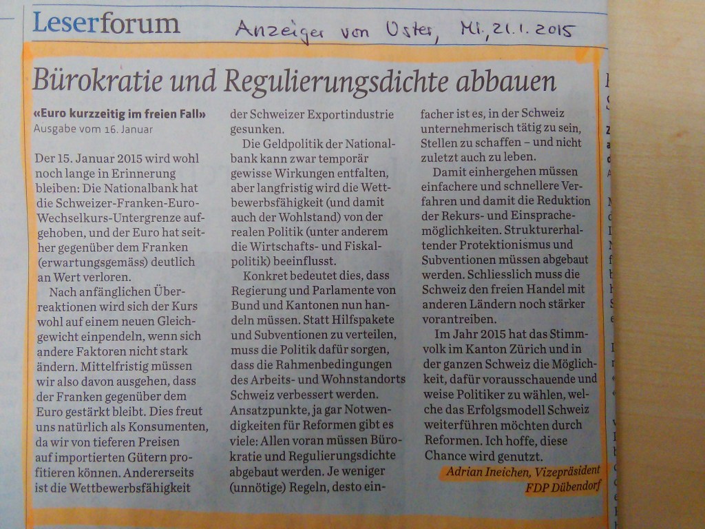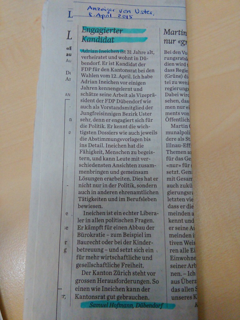4. April: GV der FDP Dübendorf