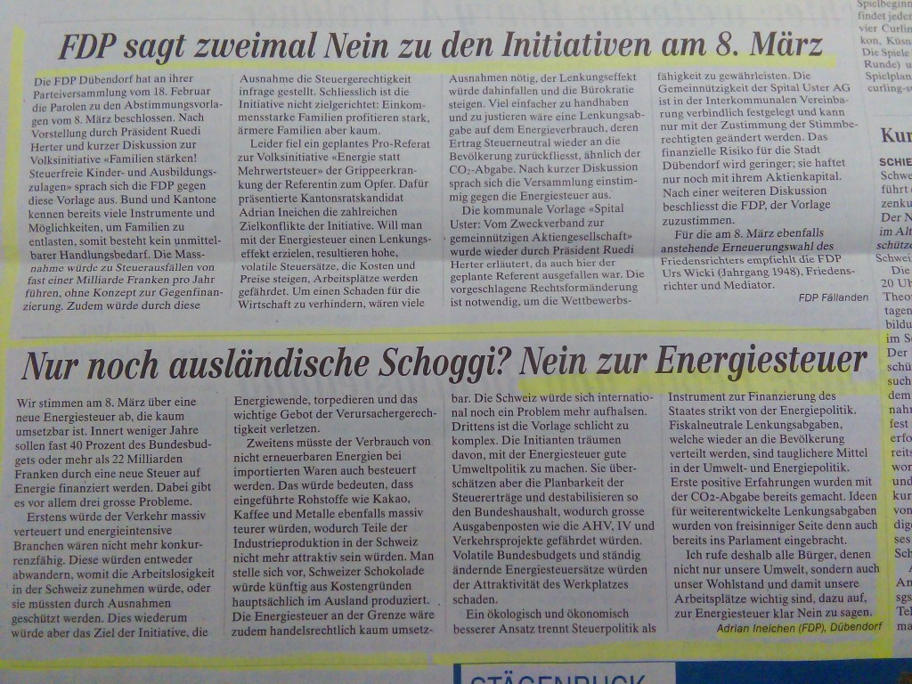 21. Januar: Standaktion der FDP Dübendorf