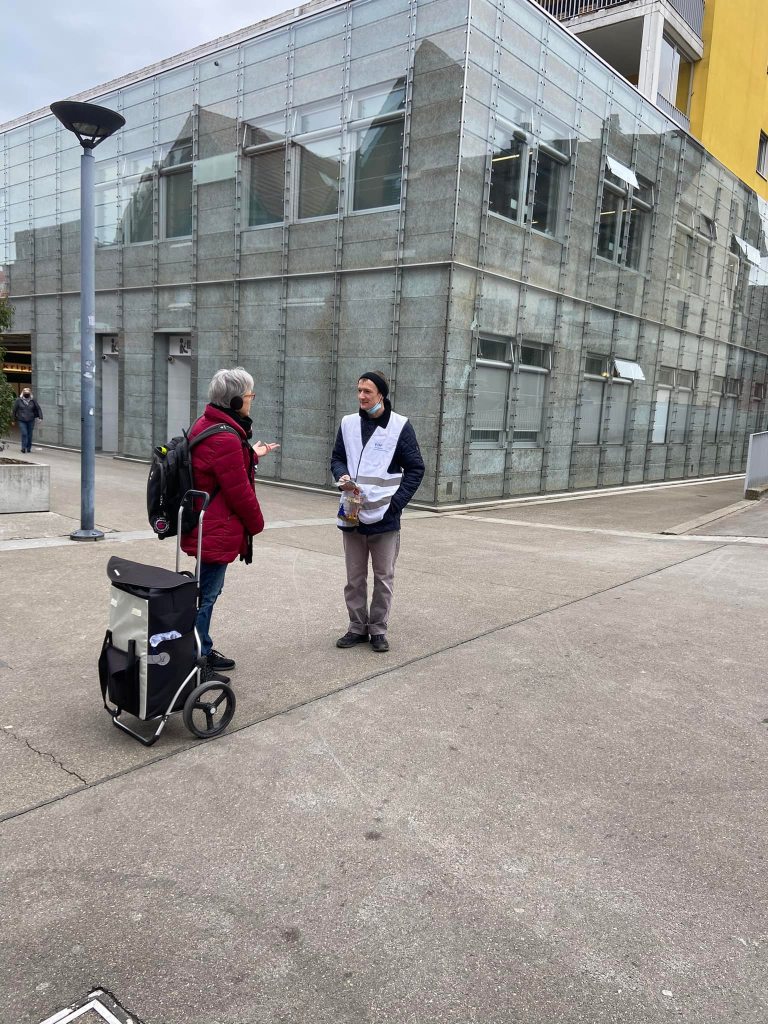 Flyeraktion im Hochbord/Bahnhof Stettbach, November 2021